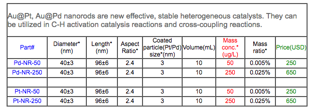 NanoSeedz™提供的Au@Pt、Au@Pd纳米棒是新型高效、稳定的非均相催化剂。它们可用于CH活化催化反应和交叉偶联反应。因此,Au@Pt/Pd纳米棒可广泛应用于一氧化碳去除、生物柴油生产、燃料电池催化、光催化水分解制氢以及精细化学催化等领域。